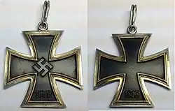 The Grand Cross of the Iron Cross was twice the size of the Iron Cross and was worn with a ribbon around the neck. The later Knight's Cross of the Iron Cross, instituted in 1939, was also worn from the neck; it was smaller than the Grand Cross but larger than the Iron Cross.