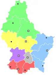 Diekirch Bettendorf, Bourscheid, Colmar-Berg, Consthum, Diekirch, Ermsdorf, Erpeldange, Ettelbruck, Feulen, Hoscheid, Medernach, Mertzig, Putscheid, Reisdorf, Schieren, Tandel, Vianden 33,090 320.71