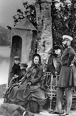 As the youngest child in a large family, he was much loved by his parents and siblings.[2] His early years were spent with his two siblings closest in age: his sister Marie, and his brother Sergei, from whom he was inseparable.[3] By the time of Paul's birth, his mother was afflicted with tuberculosis and the doctors advised her not to have more children. Relations between Paul's parents ceased.[4][5] The family was struck by tragedy in 1865 with the death of Paul's eldest brother, Nicholas Alexandrovich, Tsesarevich of Russia, when Paul was four years old.[6] The following year, his father, Alexander II, started an affair with Princess Catherine Dolgorukova, who gave him three children.[5]