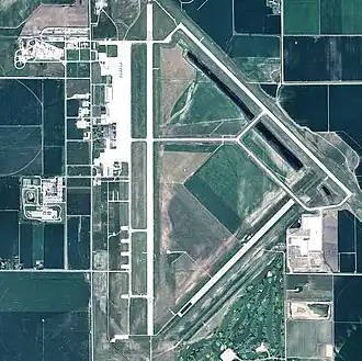 Grand Island Army Airfield was opened in 1942, and was one of eleven USAAF training bases in Nebraska during World War II. A portion of the 2,125-acre (8.60 km2) site was a former national defense airport. The site is bordered on all sides by farm ground. The Army Airfield was constructed, in part, over the pre-existing Grand Island Arrasmith Airport. To convert the existing airport into a military airfield, 173 buildings and structures were constructed at Grand Island Army Airfield.