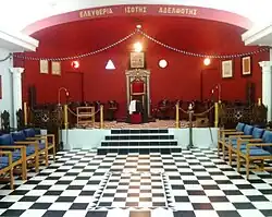 - a. ^ Many records relating to the formation of Cypriot lodges by the Grand Lodge of Greece were routinely transferred back to the headquarters of that Grand Lodge for archiving. Regrettably, these were all destroyed (burned) by the Nazis during WWII during the occupation of Greece and the suppression of Masonic activity there.