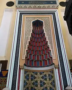 The Grand Mosque of Constanța stands on the site of the former Mahmudia Mosque (Geamia Mahmudia), built in 1822 by Hafız Hüsseyin Pasha and named after Ottoman Sultan Mahmud II. The mosque was officially inaugurated by Carol I on 31 May 1913.[4] During the ceremony, Sultan Mehmed V bestowed the Order of the Medjidie upon chief architect Victor Ștefănescu. King Carol I also rewarded Ștefănescu with a watch.[2]