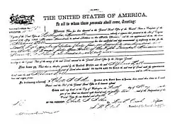 The picture above is a homestead certificate issued to Alphonso Hall in 1882 and signed by President Chester A Arthur. This Homestead certificate is for a 160-acre (0.65 km2) parcel of land in the southwest quarter of Section 34. In December 1871, the state of Minnesota granted all odd numbered sections of land extending along the proposed right-of-way of the St. Paul & Sioux City Railway Company to that company. This was the so-called "ten-mile limit" extending for five miles (8.0 km) on either side of any rail line planned by a railroad company. Even-numbered sections had been retained by the government for homestead or for sale to actual settlers. Alphonso Hall and his family are listed on the 1880 Federal Census roster for Grand Prairie township, though not on the 1875 census.[5]