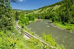 In 1884 the Oregon Railway and Navigation Company (OR&N) built its tracks through the valley, connecting the area to Portland by rail. By 1890 the OR&N had constructed a branch line to Elgin; in 1907 it was extended to Joseph in the Wallowa Valley.[65] The rail line follows the winding Grande Ronde River canyon from Elgin to Rondowa, where it turns east up the Wallowa River canyon.[6] It was primarily used to haul wood, grain and livestock and had a regular passenger service until 1960. The Wallowa Union Railroad Authority now operates the line; since 2004 it has hosted a heritage rail service, the Eagle Cap Excursion Train,[66] between Elgin and Joseph.[65]