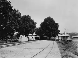 The station master's house was built in 1910 and alterations carried out to the station building around that time. By 1961 the complex consisted of a station building with signal cabin, two tanks, cream shed, closet, pumphouse, station master's house, forkline to cattleyards, engine shed and coal stage. The engine shed had been demolished by 1963 and the trucking yards were discontinued in 1991.[1]