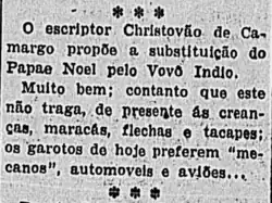 - ^ Camargo, Christovam de (11 December 1932). "SUBSTITUIÇÃO DE PAPÁ NOEL POR VOVÔ INDIO" [REPLACEMENT OF SANTA CLAUS WITH GRANDPA INDIAN]. Correio da Manhã (in Portuguese). p. 9. Retrieved 21 December 2023.