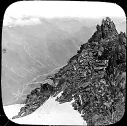 The Grands Mulets Hut (French: Refuge des Grands Mulets) is a mountain refuge in the Mont Blanc massif in the French Alps at an altitude of 3,051 m. It is owned by the Club Alpin Francais. The hut is located on a pyramidal rock island, at the junction of two streams of the Bossons Glacier on the north side of Mont Blanc. If the state of the glacier is not too severe, the hut is wardened in summer and can be used as an alternative route of ascent to the summit of Mont Blanc, following the original historic route by the first ascensionists. Nowadays the hut is used more frequently by ski-mountaineers in spring, or as a more sheltered and alternative route of descent from Mont Blanc than the much more popular Goûter route, though route-finding can be difficult in fog and requires prior knowledge of the crevassed state of the Bossons glacier below the hut.[1]: 23 [2]: 269