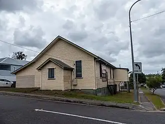 Grange Heights Methodist Church opened on Saturday 23 February 1946 at 26 Progress Road (27°25′28″S 153°00′26″E / 27.4244°S 153.0071°E / -27.4244; 153.0071 (Grange Heights Methodist/Uniting Church (former))), now in Alderley.[21] It became Grange Heights Uniting Church. It closed between 1975 and 1990.[22][23] The building still exists and is used as a childcare centre.[24][25]