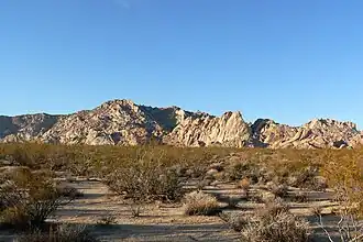 The Granite Mountains is a small mountain range in eastern San Bernardino County, California, USA, in the Mojave Desert. The range stretches 10.7 mi (17.2 km) from Granite Pass to Budweiser Wash. The highest peaks of this mountain range are an unnamed peak, which is 6,738 ft (2,054 m) in elevation, and Granite Peak, which is 6,766 ft (2,062 m) in elevation.[2][3]