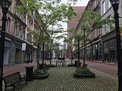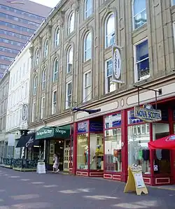 Granville Mall is a pedestrian mall located in downtown Halifax, Nova Scotia, Canada.[1] It was formerly part of Granville Street, until nearby developments, such as the Cogswell Interchange, and Scotia Square, rendered this section traffic-wise and it was converted into a pedestrian mall. The buildings lining the street house a large variety of pubs and stores, and also part of the Nova Scotia College of Art and Design. The nearby Halifax Harbour contributed significantly to the thriving trade activity along the street.[1]