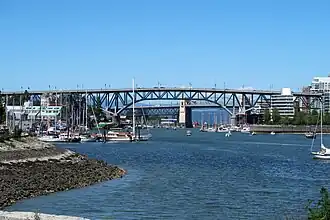 The Granville Street Bridge or Granville Bridge is an eight-lane fixed cantilever/truss bridge in Vancouver, British Columbia, Canada, carrying Granville Street between Downtown Vancouver southwest and the Fairview neighborhood. It spans False Creek and is 27.4 m (90 ft) above Granville Island. The bridge is part of Highway 99.