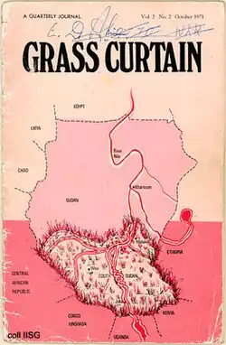 Grass Curtain was a quarterly journal of Southern Sudanese politics and current events published by the Southern Sudan Association in London between 1970 and 1972. Enoch Mading de Garang was the journal's co-founder and editor-in-chief.[2][3] The Grass Curtain was closely linked to the Southern Sudan Liberation Movement (SSLM), the political arm of Anya-Nya, a collection of Southern Sudanese separatist movements formed during the First Sudanese Civil War.[2][3][note 1] The journal was published in large part to generate wider support for the South Sudanese cause.[4]