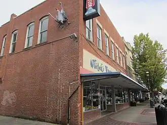 Wayne Chabre's Grasshopper, dedicated in 1988, depicts an insect of the same name, mounted in a head-down position on the exterior brick wall of a building at 455 Court Street Northeast. The brazed copper sculpture measures 5 feet (1.5 m) x 2.5 feet (0.76 m) x 2 feet (0.61 m). It was surveyed and considered "treatment needed" by the Smithsonian Institution's "Save Outdoor Sculpture!" program in August 1993, and was administered by the City of Salem's Community Development department at that time.[1]