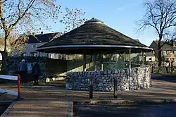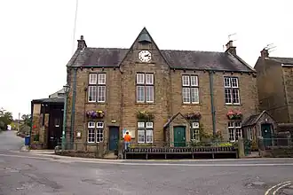 Though sometimes referred to as a village, Grassington was granted a Royal Charter for a market and fair in 1282 giving it market town status.[11] The market was held regularly until about 1860. Grassington Hall is reputedly the oldest house in Yorkshire, dating from the late 13th or early 14th century.[12] A change in land use from the early 17th century, when lead mining began to assume more importance and brought some prosperity, but Grassington's heyday arrived during the late 18th and early 19th centuries. Grassington Town Hall was completed in 1855.[13] The opening of the Yorkshire Dales Railway to Threshfield in 1902 brought new visitors, many of whom settled, some finding work in Skipton or in the developing limestone quarries.