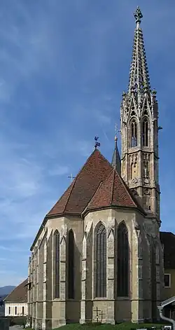 - The Sanctuary of Maria Straßengel was built in the 14th century and is one of the most important sacred buildings of the high Gothic in Austria. Particularly noteworthy is the filigree tower construction, which recalls those of the Freiburg Minster.