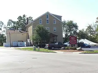 The Gray–Watkins Mill is located on the southeast corner of River and Mill Streets in Montgomery. Built in 1853, its original purpose was as a water-powered turbine flour mill on the Fox River. It operated until 1916, when ice in the river destroyed the dam. Electricity allowed the mill a replacement power source until it shut down in 1922. For the next several decades, the mill stood empty. In 1945, Ernest Anfinsen purchased the building to manufacture automotive parts. The building was again abandoned following Anfinsen's death in 1971. It was acknowledged as a historic site by Montgomery and nearby Aurora and was renovated in 1976. The building was listed on the National Register of Historic Places on December 17, 1979.[2]