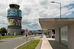 Graz Airport spans the village of Abtissendorf in Feldkirchen municipality and the cadastral community of Thalerhof in Kalsdorf municipality. The airport terminal is located in Abtissendorf.