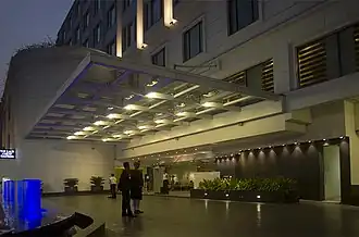 During its heyday, the hotel was known variously as the "Jewel of the East"[1] and the "Savoy of the East"[4] and was prosaically described by Kipling in his short story City of Dreadful Night.[1] It was said of the hotel in 1883 that "a man could walk in at one end, buy a complete outfit, a wedding present, or seeds for the garden, have an excellent meal, a burra peg (double) and if the barmaid was agreeable, walk out at the other end engaged to be married".[6] The hotel has housed many famous personalities including Nikita Khrushchev and Nikolai Bulganin,[4] Elizabeth II,[1] Mark Twain,[4] Dave Brubeck[7] and possibly Ho Chi Minh.[1] The management of the hotel was taken over by the state government in the 1970s and continued operations for over 30 years.[1] The state sold it to the private group The LaLiT Hotels, Palaces and Resorts in 2005.[4] Until its closure for restoration in 2005, the hotel was the longest continuously operating hotel in Asia.[8]