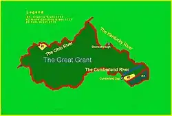 The description of the lands between the Cumberland and Kentucky rivers above is well known and used by map makers to illustrate the Great Grant lands.