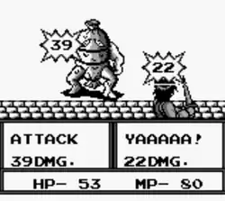 The game plays similarly to many other RPGs of the time, although there are a few significant differences. The graphics are very similar to those of Final Fantasy Legend and Final Fantasy Legend 2. However, battles are reminiscent of Dragon Warrior. Only one character fights (Sam), and only one monster fights at a time. The game features random encounter battles, and the player's progress can be saved anytime, except during battle, by using the select button. Additionally, most of the characters, enemies, and towns in the game are named after different types of food or food-related products.