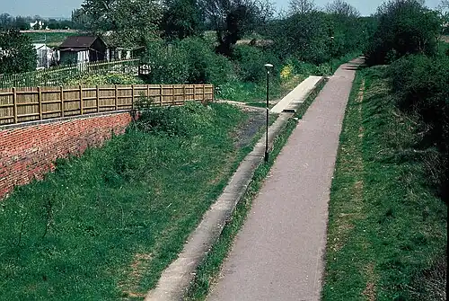 The last passenger train ran on 5 September 1964[1]: 109 and the last goods train passed through on 22 May 1967.[2] The station building was demolished although the platform remains intact to this day. The trackbed through the station has been converted into a cycle way, forming part of the Milton Keynes redway system.