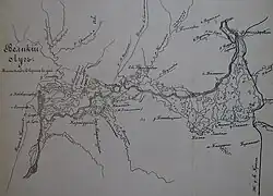 In 16th–18th centuries, the Great Meadow was one of the most important areas of the Zaporozhian Sich.[2] In contrast to the surrounding dry steppe, the Great Meadow was permanently inhabited by the Cossacks. The area was used for agriculture, raising livestock, and as a source of wood. The dense forest also protected the Cossacks from invasions.[7] Six of eight Sichs (administrative centres of the Zaporozhian Cossacks) were located in the Great Meadow: Tomakivka, Bazavluk, Mykytyn, Chortomlyk, Kamianka, and Nova Sich.[1]