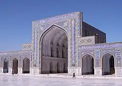 The Great Mosque of Herat (Pashto: د هرات جامع جومات, romanized: Jami Masjid of Herat; Dari: مسجد جامع هرات),[1] is a Sunni Friday mosque, located in the city of Herat, in the Herat Province of north-western Afghanistan. It was built by the Ghurids, under the rule of Sultan Ghiyath al-Din Muhammad Ghori, who laid its foundation in 1200 CE. Later, it was extended several times as Herat changed rulers down the centuries from the Kartids, Timurids, Mughals and then the Uzbeks, all of whom supported the mosque. The fundamental structure of the mosque from the Ghurid period has been preserved, but parts have been added and modified. The Friday mosque in Herat was given its present appearance during the 20th century.