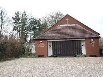 A chapel originally found in Great Moulton was donated to the Museum of East Anglian Life and is a "tin tabernacle", which is common in the area.[9] It was built in the 1890s and cost the equivalent of £20,000 in today's money. The community built a new chapel in the 1990s which is why the previous was donated.[10]