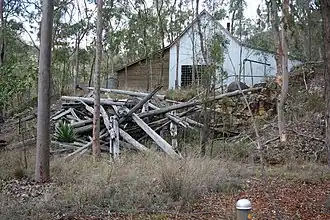 The property contains 16 mine shafts of varying depths, an adit and an open cut shaft. The most important of these workings are the Eastern Shaft and the Gully shaft with their associated surface structures and plant. The Eastern Shaft group is extremely intact and includes a timber collared shaft and timber headframe, with an intact round timber and weatherboard winding shed containing an air receiver, compressor, single cylinder and portable steam engines, winding engine, boiler and pump. An extensive mullock dump is associated with the shaft.[1]