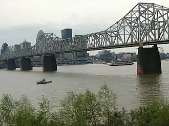 The Great Steamboat Race is an annual steamboat race, taking place the Wednesday before the first Saturday of May, three days before the Kentucky Derby, as part of the Kentucky Derby Festival. The race was first run in 1963 and it takes place on the Ohio River in the span that runs between Louisville, Kentucky and Jeffersonville, Indiana. Until 2009, the race was traditionally between the Belle of Louisville and the Delta Queen, although other steamboats have participated. Since 2009, the Delta Queen has not participated due to ownership and legal issues, and the Belle of Cincinnati has taken its place in the competition.[1] In 2012, the Belle of Louisville and Belle of Cincinnati were joined in the race by the American Queen.[2]