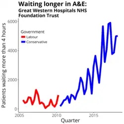 - ^ "A&E waiting times and activity". NHS England. Retrieved 24 April 2018.