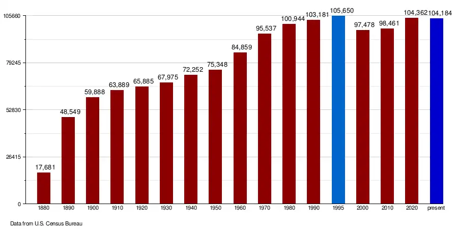 | 2024 (est.) | 104,184 | [1] | −0.2% |