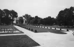 Originally in the park were planted Simon's poplar trees, which were replaced in the 1970s with northern red oaks.[1]