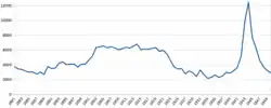 On 11 June 1939 the station was moved about 440 yd (400 m) north-westwards,[12][13] from its original site to the east of Cliff Road.[14] The move, which had been planned in 1915,[15] was associated with work starting in 1935,[16] and for which £4,989[17] was funded in 1938,[18] to ease the gradient and curve on the bank between Greatford and Kakariki[12] to 1 in 70.[19] The realigned curve opened in March 1939 and eliminated two level crossings.[20]