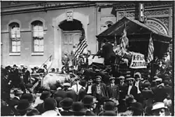 A 12-foot bronze statue of Harry S. Truman was erected in Athens in 1963, with the help from Greek-Americans. It is one of only eight statues of American presidents outside the United States. The statue has been a focal point of anti-Americanism in Greece. It has been toppled over several times, painted and vandalized.[32] In March 1986, it was destroyed by a dynamite bombing by a group considering it as being a symbol of American imperialism. The statue was restored within a year by the government[33] although it had originally been refused by the Athens City Council.[34][35] More recently in April 2018, a group of students tried to topple the statue during a communist anti-American protest but were stopped by riot police.[36]
