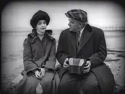 Von Stroheim's biographer Arthur Lennig compared the director's visual style to that of pioneering filmmaker D. W. Griffith but felt that "unlike Griffith, who viewed scenes as though through a fourth wall, von Stroheim shot from many sides and from different angles; he also used deep focus, meaningful foregrounds and effective camera movement."[57] Greed's lighting included high contrast, chiaroscuro techniques with pools or shafts of lights illuminating an otherwise dark space. Examples of this technique include the scene where McTeague begs Trina for money in a pool of moonlight and the merry-go-round scene in which characters alternate between appearing only as dark silhouettes and being fully lit.[58]