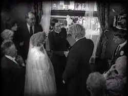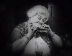 Throughout his career von Stroheim used grotesque imagery and characters. This is most apparent in the wedding-banquet scene, which includes a midget, a hunchback, a woman with buck teeth and a boy on crutches.[76] The wedding guests violently and crudely devour their meal like animals. This scene was unlike any other in films of that period, which treated meals with dignity and a sense of communion.[77] Other instances of grotesque imagery include Trina's fingers becoming infected and amputated.[78] Von Stroheim contrasted love scenes between McTeague and Trina with their ugly, lower-class environment, such as the sewer with the dead rat and a garbage truck driving by as they kiss.[79]