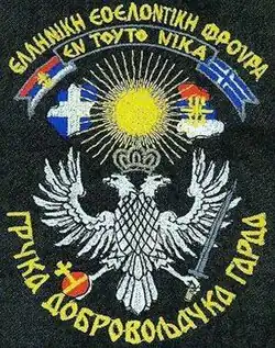The Greek Volunteer Guard (Serbian: Грчка Добровољачка Гарда Grčka Dobrovoljačka Garda; Greek: Ελληνική Εθελοντική Φρουρά Elliniki Ethelodiki Froura) was a unit of Greek volunteers that fought in the Bosnian War on the side of the Army of the Republika Srpska. Some members of the unit are alleged to have been present in the area of the Srebrenica massacre and reportedly hoisted a Greek flag over the town, which was recorded 'for marketing purposes'.[1][2][3]