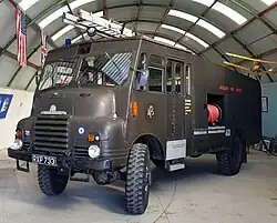 In March 2004, the British Government announced that it was conducting a test sale[3] of forty of its remaining fleet of more than nine hundred vehicles, and that it was planning to dispose of the remainder. The sale of the fleet was completed, and most of the vehicles were sold to fire brigades in developing countries, mostly in Africa.[4] Some were donated to museums, including the prototype which was placed in the Museum of RAF Firefighting. Others are in the National Emergency Services Museum, Military Museum Scotland, National Museum of Scotland, Kent Firefighting Museum, Leicester Fire Brigade Museum, Yorkshire Air Museum and Montrose Air Station Heritage Centre. Some were purchased by vehicle restoration trusts and some are privately owned.