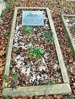 The cemetery has 13 military burials, two from World War I and eleven from World War II, the latter including two pilots – P/O Evelyn Creen Stuart Wilson-Steele of 219 Squadron (killed 1942)[3] and Sgt Michael Henry John Kilburn. Kilburn joined the RAFVR aged 18 to train as a pilot and was completing his last two weeks of training when he was killed during a training flight in January 1942. He was initially buried along with the other seven members of his crew at Dyce Old Churchyard near Aberdeen. However, his family in Farnham must have applied to the RAF to have his remains returned to his home town and in 1943 he was reinterred in the plot here.[4] Buried nearby is Lt Ernest Lyford of the Home Guard[5] who was accidentally killed in 1943 aged 55 while training with bombs.[6][7]