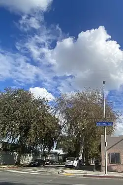 According to the Los Angeles Times Mapping L.A. project, the Green Meadows neighborhood touches Florence on the north, Florence-Firestone on the northeast, Watts on the east, Willowbrook on the south, Broadway-Manchester on the west, Vermont Knolls to the northwest and Athens to the southwest.[14] It is bounded by Firestone Boulevard on the north, Central Avenue on the east, the Los Angeles city boundary on the south and South San Pedro Street on the west.[15][16] In the first version of Mapping L.A., "Green Meadows" was not mapped as a distinct neighborhood; rather, the area was shown to be part of Historic South-Central Los Angeles.[17]