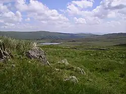 Green Quarter Fell is an upland area in the east of the English Lake District, near Kentmere village, Cumbria. It is the subject of a chapter of Wainwright's book The Outlying Fells of Lakeland.[1] Wainwright's walk is an anticlockwise circuit from Kentmere, reaching the summit of Hollow Moor at 1,394 feet (425 m) and a nameless summit at 1,370 feet (420 m) and making a detour to admire the tarn of Skeggles Water. He says that the walk offers "a perfectly-balanced and lovely view of upper Kentmere ... that cries aloud for a camera."