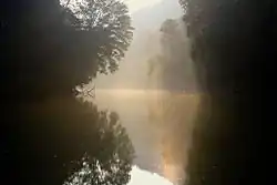 The Green River flows through Mammoth Cave National Park, located along river miles 188 to 210. The river drains the cave and controls the master base level of the Mammoth Cave system: the construction of a 9-foot (2.7 m) dam at Brownsville in 1906 raised the water level in some parts of the cave system by as much as 6 feet (1.8 m) above its natural value. The heightened level of Green River probably kept the connection of Mammoth Cave and the nearby Flint Ridge Cave system underwater until a drought partially exposed it and made connection a reality, increasing the length of Mammoth Cave to over 360 miles in length.[9] In 2017, multiple agencies along with the U.S. Army Corps of Engineers closed Green River Lock and Dam #6 and dismantled it after a hydraulic hole was discovered in the dam. Green River is now free-flowing throughout Mammoth Cave National Park though water levels are impacted by releases from Green River Lake upstream. This has allowed for increased canoeing and kayaking opportunities from Nolin Dam to Brownsville, and has added more land to the National Park on the west bank of Green River. The 2022 removal of Lock and Dam #5 near Reedyville will allow more opportunities for canoeing and kayaking along the river from Mammoth Cave to Rochester. [10][11][12][13]