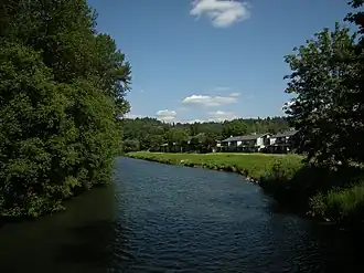 ![]() Looking upriver from suspension bridge in Isaac Evans Park, Auburn, Washington | |