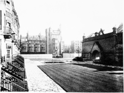 From 1882 to the early 1920s, the remainder of Green Street was demolished and rebuilt, predominantly in redbrick or terracotta backed houses. The Grosvenor Office allocated a communal garden on the south side of the street, which lies between Park Street and Dunraven Street.[1] Nos. 2–11 were constructed between 1891 and 1895, all but one by Matthews, Rogers and Company and designed by Maurice Charles Hulbert. The exception was No. 10 which was built for St John Brodrick (the future Earl of Midleton) and designed by Balfour and Turner. Nos. 25–31, architect Robert William Edis, constructed between 1891 and 1894. The properties were built in four stages in conjunction with development on the adjoining Park Street; No. 25 did not begin redevelopment until 1893, two years after work started on No. 26.[2]