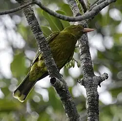 The green oriole or Australasian yellow oriole (Oriolus flavocinctus) is an inconspicuous inhabitant of lush tropical vegetation throughout Australia and New Guinea.[2]