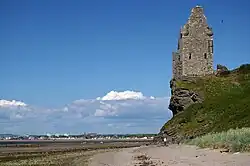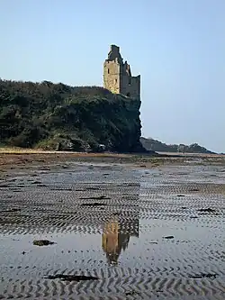 Greenan Castle is a 16th-century ruined tower house, around 2+1⁄2 miles (4 kilometres) southwest of Ayr in South Ayrshire, Scotland. Situated at the top of a sea cliff, it was originally a promontory fort converted into a motte-and-bailey in the 12th century. In the 15th century a tower house was built by the Lords of the Isles, which later passed into the hands of the Kennedy family.[1]