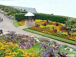 In 1936, a floral clock with a cuckoo type chime, was built by Ritchie & Sons of Edinburgh. It features an adjacent clock house, holding the original mechanism that keeps the clock ticking. Since its creation, it has become one of the most popular features of the gardens. In the late 1980s, a wishing well, donated by Melcombe Regis Rotary Club, was introduced into the lower gardens, and any monies thrown into the well are collected and presented to a local charity.[1][4] In 2006, the council were considering plans to erect a large Restaurant on the tennis courts in the Gardens. This plan was received with almost universal dismay and was subsequently shelved.[2]