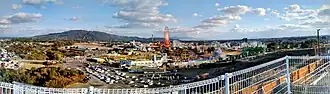 The park's predecessor, Mitsui Miike Lake Development Co. Ltd. was founded in 1964 by the Mitsui Miike Coal Mine Group which operated in Ōmuta City, Fukuoka, which neighbours Arao. In July 1966, the project began with the development of a tourism-focused fruit farm (grapes and amanatsu), children's playground, boat lake and hotel.[3] From this, tenants were gradually attracted who set up attractions. In 1976, the company merged into the Miike mine's Miike Coal Mine Construction Co., Ltd. The operation only went independent from the construction company in 1980 with the founding of Greenland Co., Ltd. In 1987 the company became a direct associate of the Mitsui Coal Mine and the company was renamed "Mitsui Greenland Co., Ltd." in 1990.
