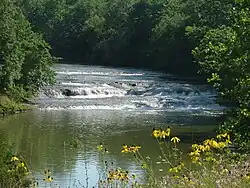 Greenville Creek is a 44.4-mile-long (71.5 km)[4] tributary of the Stillwater River in southwestern Ohio in the United States. Via the Stillwater River, the Great Miami River, and the Ohio River, its water flows to the Mississippi River and ultimately the Gulf of Mexico. The creek starts in extreme eastern Indiana in Randolph County. It soon flows into Darke County, Ohio, and joins with a tributary that also starts in Indiana, Dismal Creek. It flows through Greenville and Gettysburg before entering Miami County. Near its confluence with the Stillwater River at Covington it drops 20 feet (6.1 m) at Greenville Falls in a glacially-cut gorge that is a state nature preserve.[5]